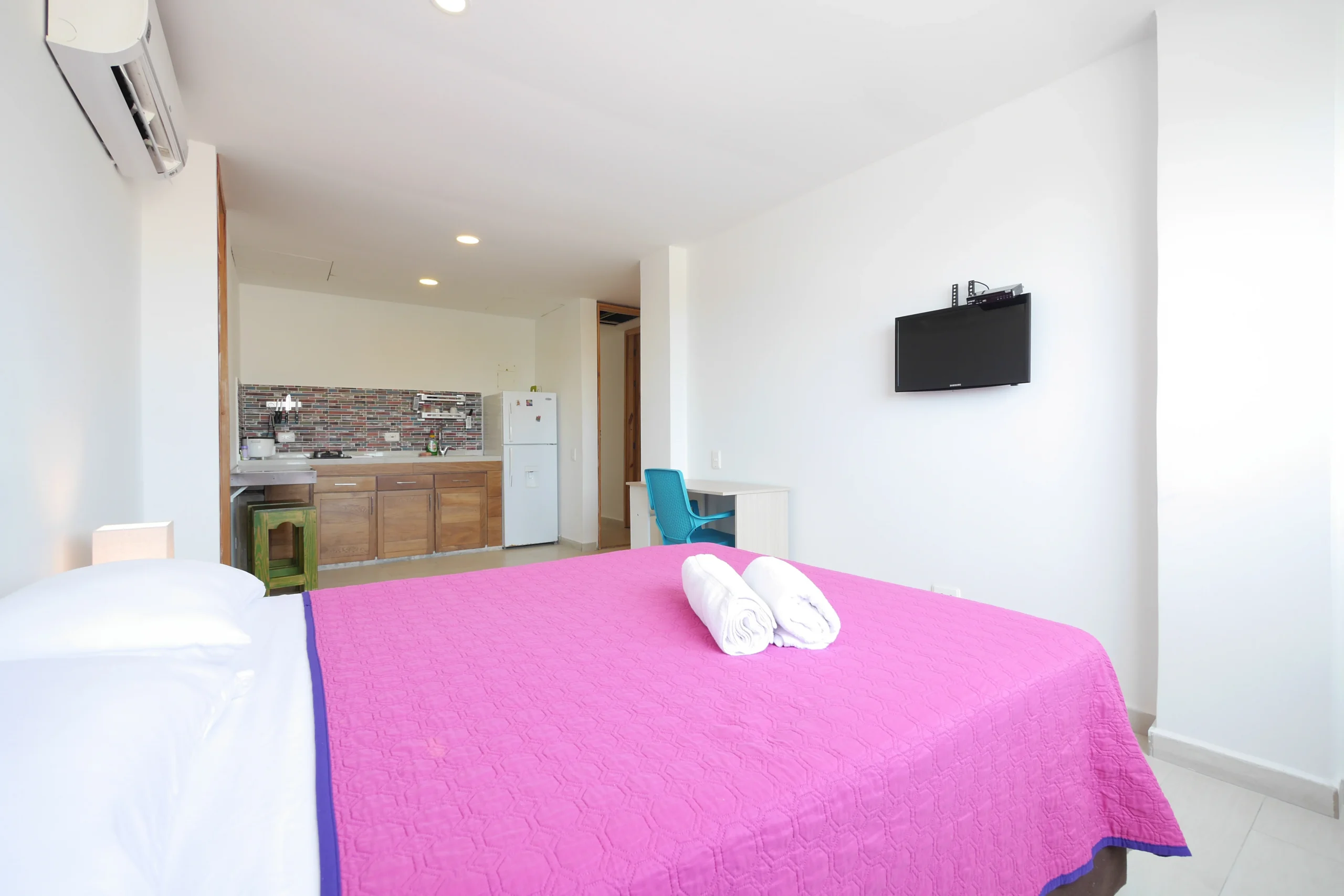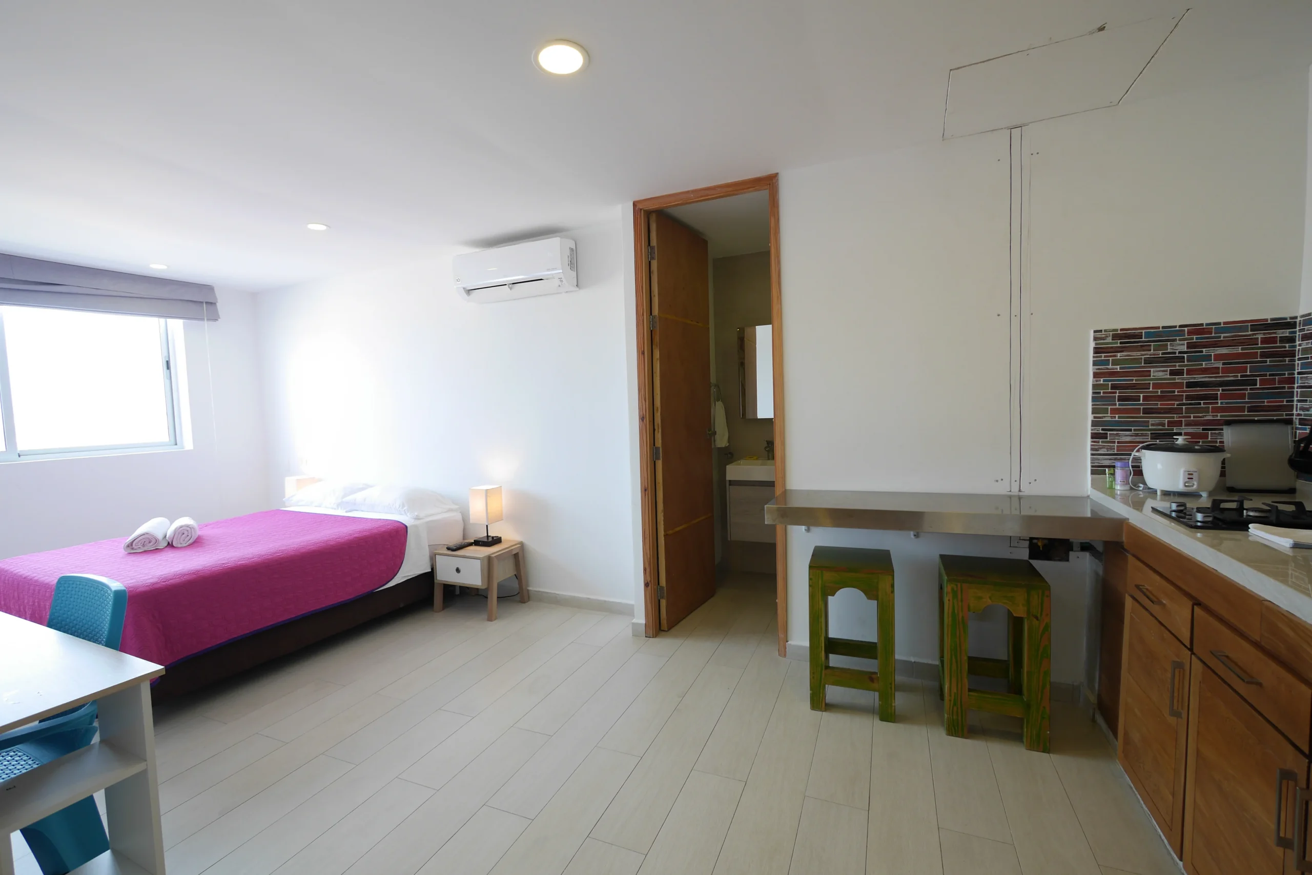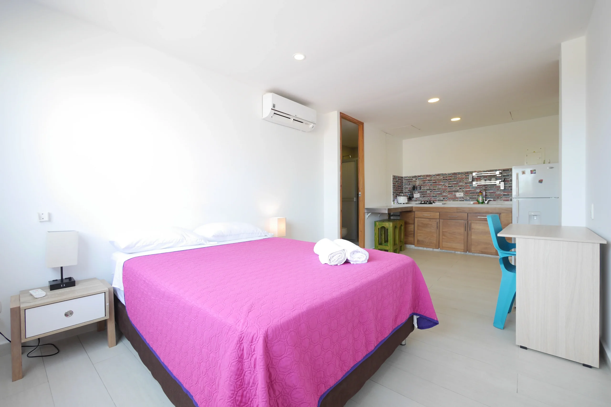 Este apartamento en San Andrés cuenta con ventana anti-ruido, escritorio, closet y cama doble. Es un lugar de 20 metros cuadrados en el que hay de todo. La cocina está equipada con todo lo que podrías llegar a necesitar.